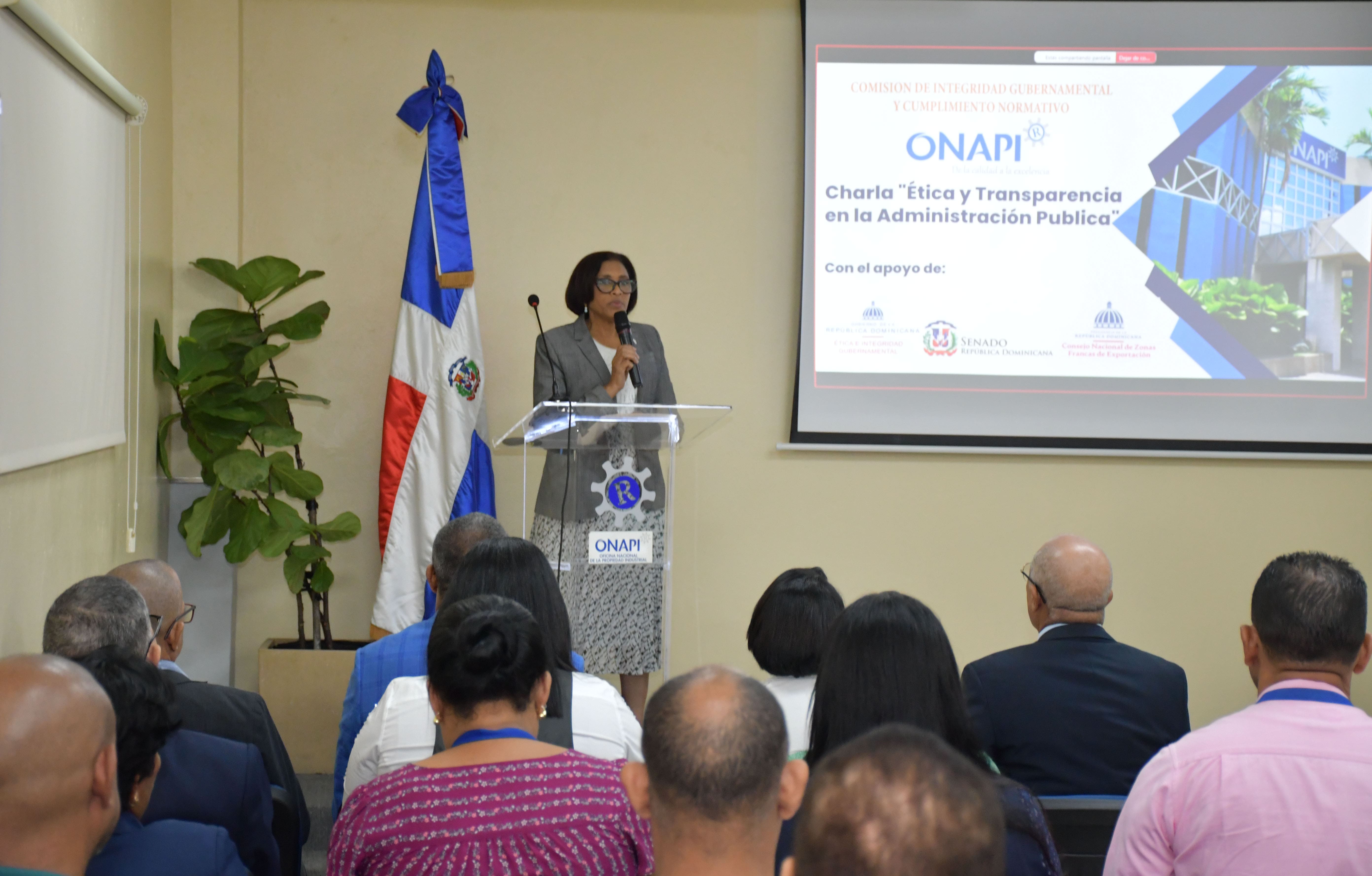 Santo Domingo, D.N.- La Oficina Nacional de la Propiedad Industrial (ONAPI) impartió una charla sobre Ética y Transparencia en la Administración Pública, con el propósito de promover el desempeño ético y fortalecer la legitimidad de la entidad, para que las prácticas dentro de la administración pública se realicen de manera justa y transparente.